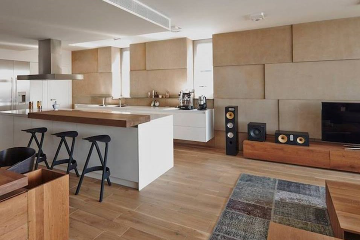 A cozinha é integrada à sala? Revestimentos vinílicos, que imitam madeira, são boas pedidas para cobrir ambos os pisos.